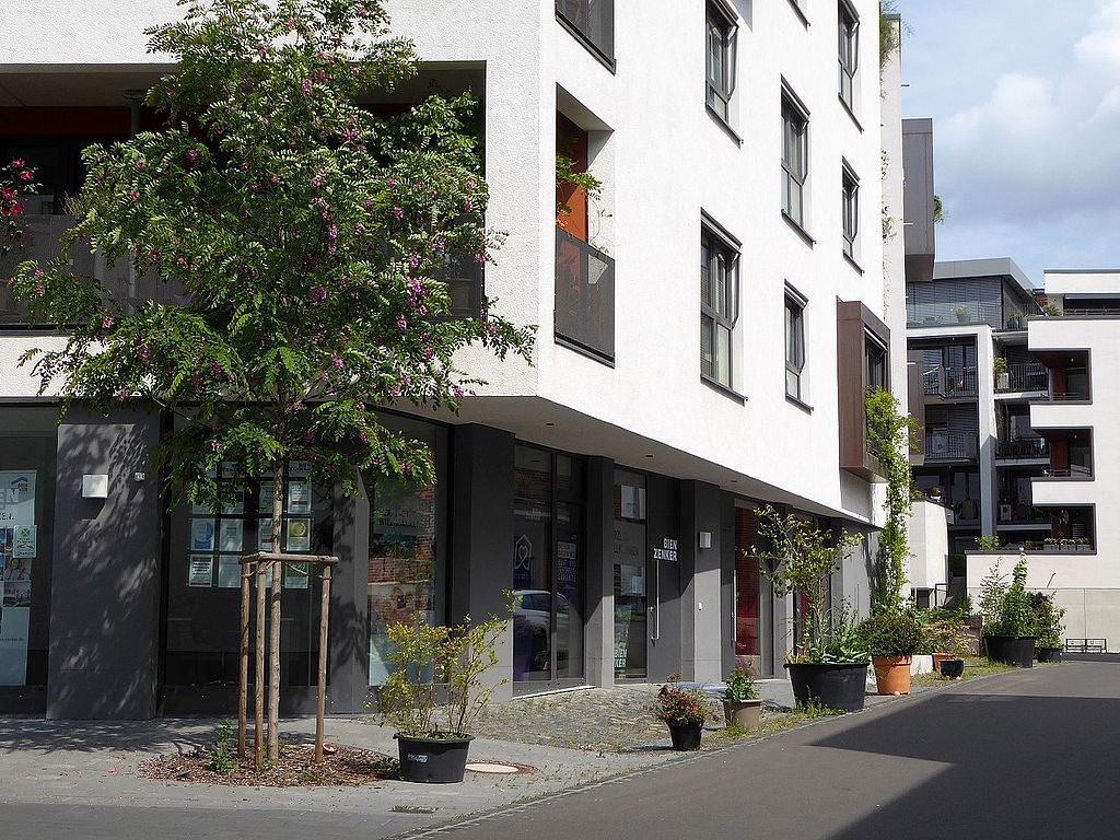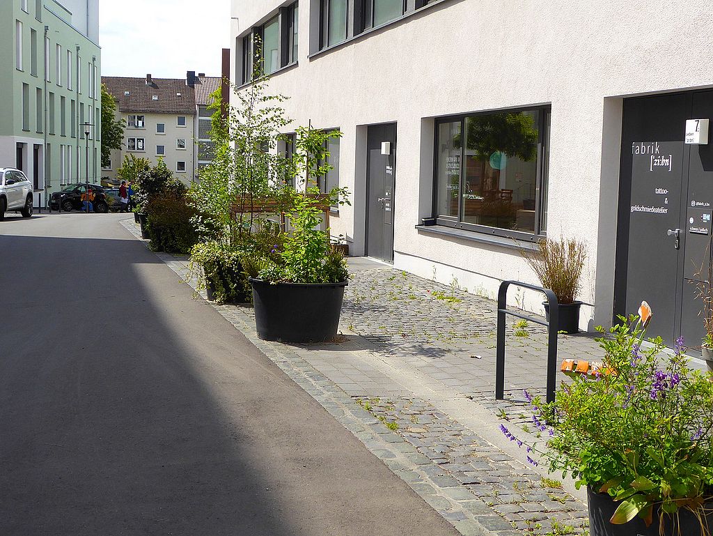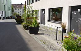 Kassel: Das Projekt liegt in einem eng bebauten, versiegelten Quartier auf einem alten Industriegelände mit Muschelkalkkellern, einer verkehrsberuhigten Anliegerstraße und begrenzten Begrünungsmöglichkeiten gemäß Bebauungsplan. mehr lesen
